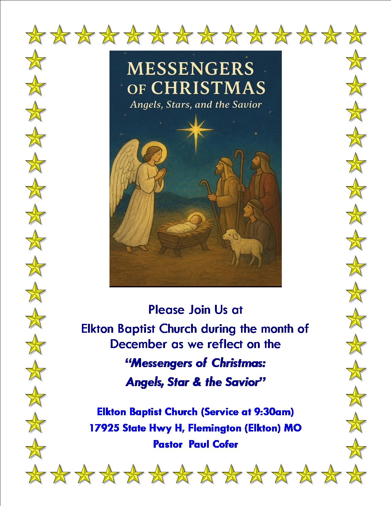 - Christmas Program: December 14, 9:30 am. Christmas luncheon will follow the program. No Sunday School.